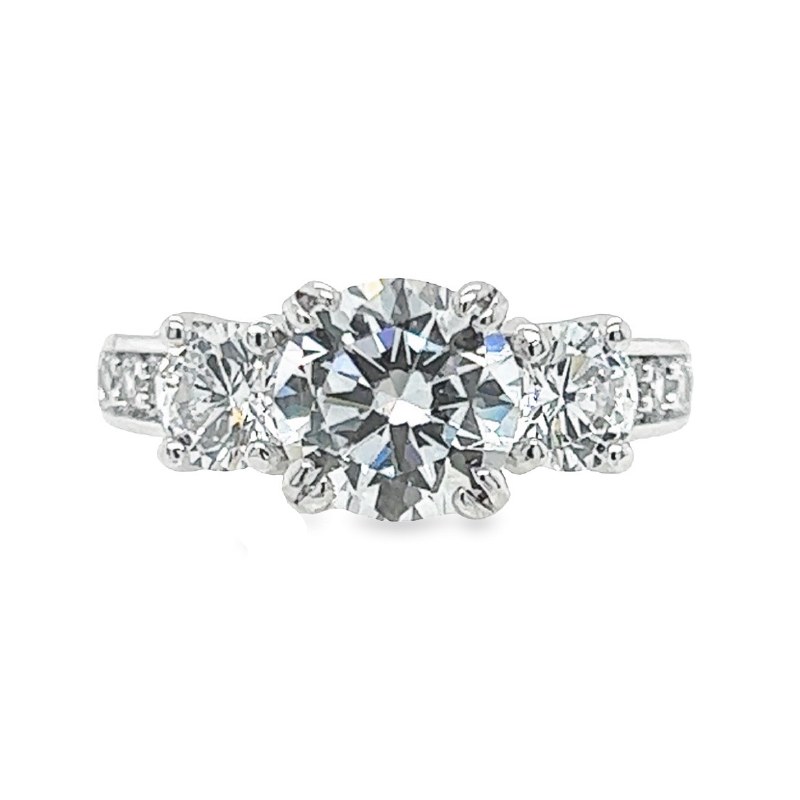 Size 10 Three Round Cubic Zirconia Sterling Silver Plated Ring