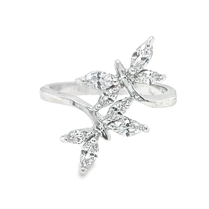 Size 10 Two Butterfly Shaped Cubic Zirconia Sterling Silver Plated Ring