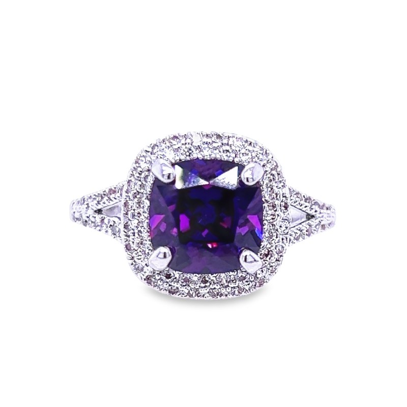 Size 5 Square Purple Cubic Zirconia Sterling Silver Plated Ring