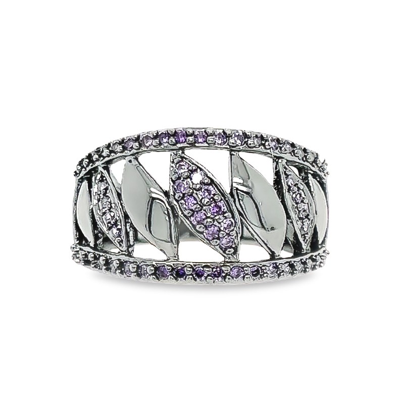 Size 6 Black and Purple Cubic Zirconia Sterling Silver Plated Ring