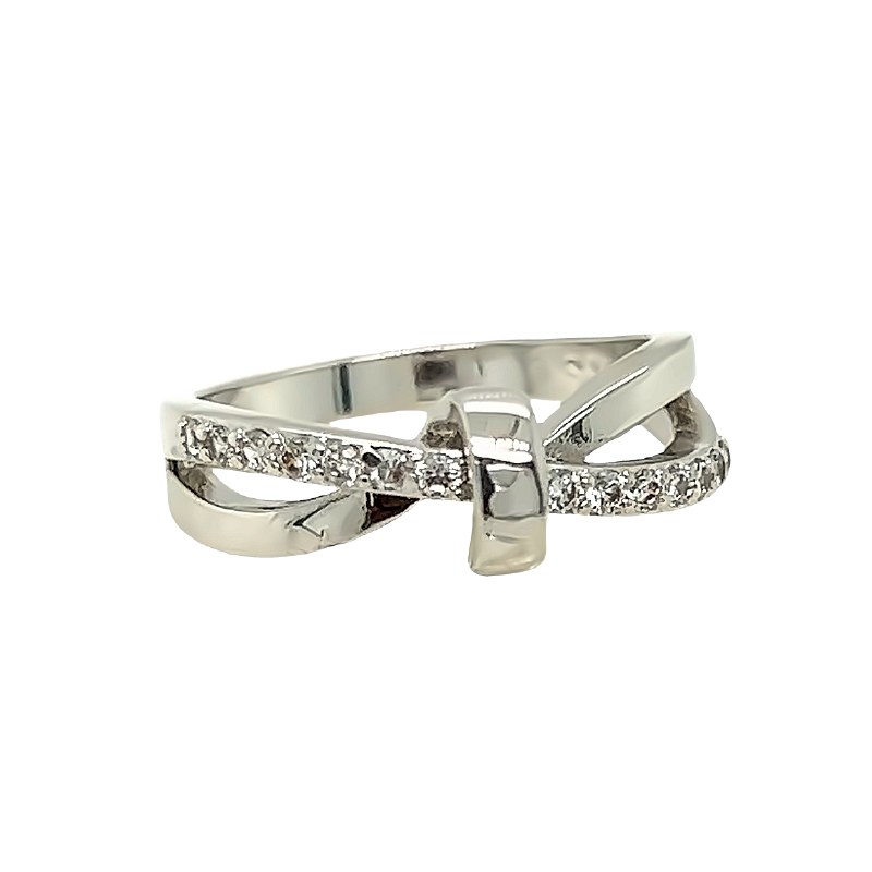 Size 6 Cubic Zirconia Loop Sterling Silver Plated Ring