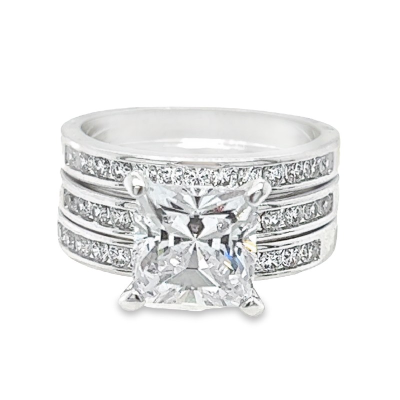 Size 6 Square Cubic Zirconia Three Band Set Sterling Silver Plated Ring