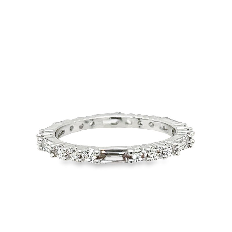 The silver rings are made using precious sterling silver. Sterling is the term used to define the highest standard for measuring silver. Specifically, it is an alloy consisting of 92.5% pure silver and 7.5% copper. This mixture of metals has led to the mark ".925" which is used by most manufacturers, including Covenant, to designate the purity of their silver products. After polishing, the rings are electroplated with a layer of precious rhodium, which gives them the look of white gold or platinum, and eliminates tarnishing.
