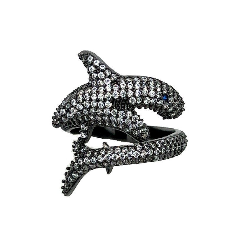 Size 7 Gray Cubic Zirconia Shark Sterling Silver Ring