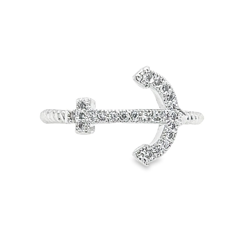 Size 8 Anchor Shaped Cubic Zirconia Sterling Silver Plated Ring
