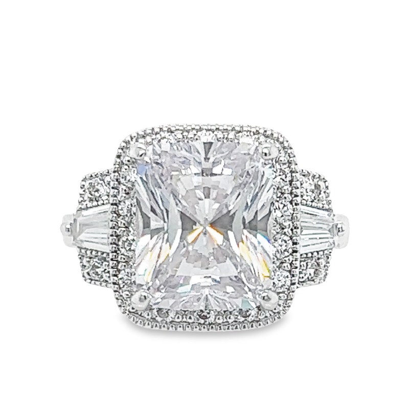 Size 8 Fancy Rectangle Cubic Zirconia Sterling Silver Plated Ring