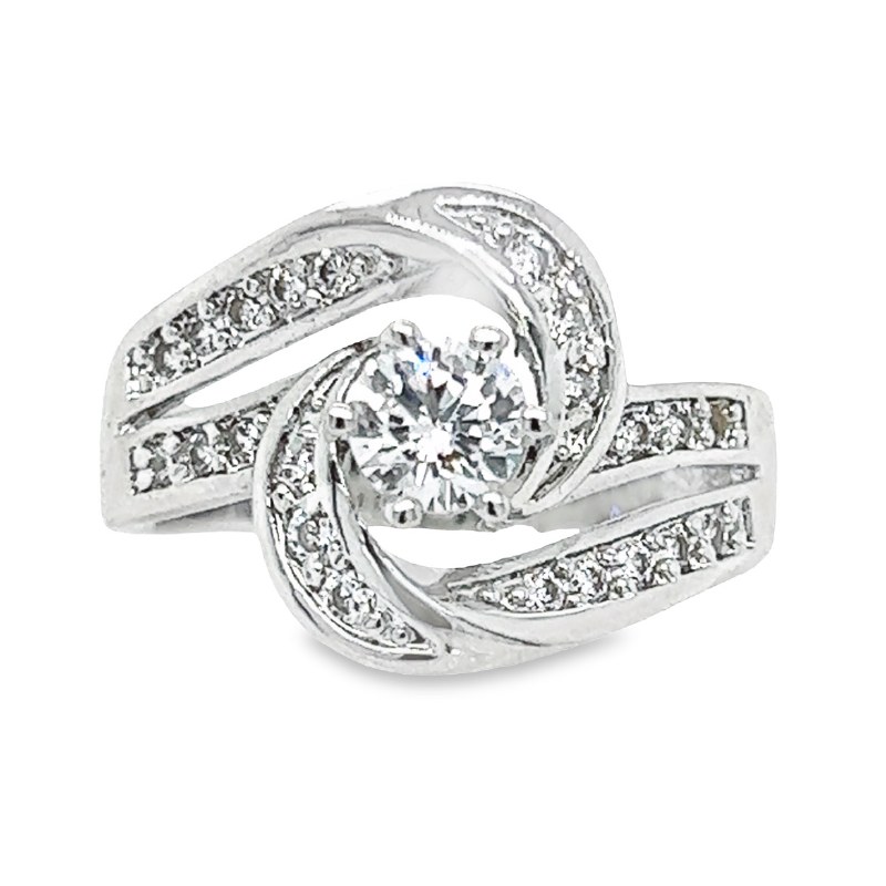 Size 8 Round Cubic Zirconia Swirl Sterling Silver Plated Ring