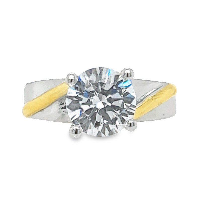 Size 8 Solitaire Cubic Zirconia Gold Sterling Silver Plated Ring