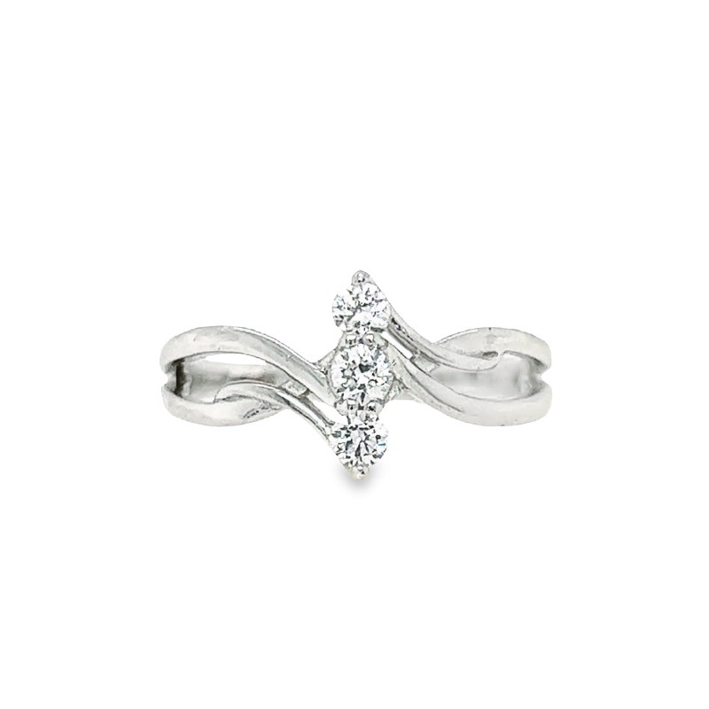 Size 8 Three Small Round Cubic Zirconia Stones Sterling Silver Plated Ring