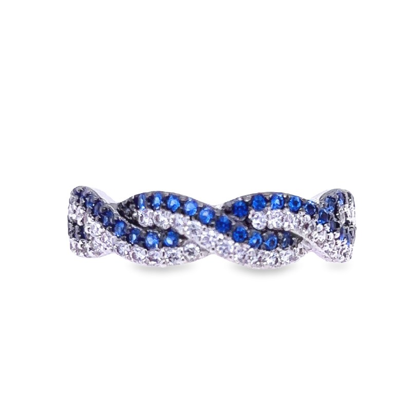Size 9 Blue and White Cubic Zirconia Sterling Silver Plated Ring