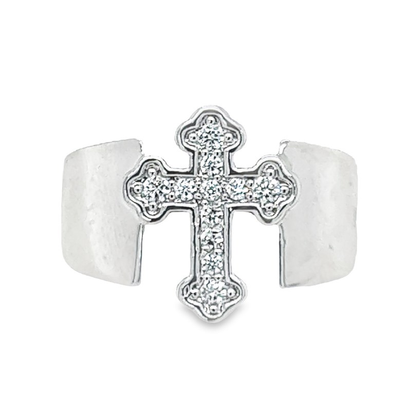 Size 9 Cross Shaped Cubic Zirconia Sterling Silver Plated Ring