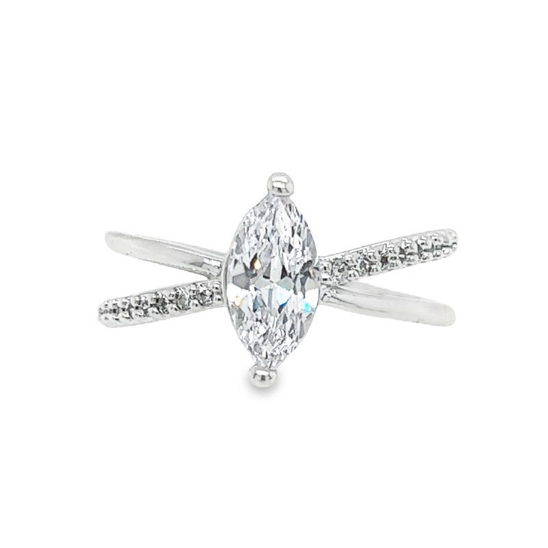 Size 9 Marquise Shape Cubic Zirconia "X" Band Sterling Silver Plated Ring